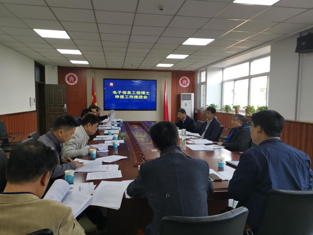 会上,熊校长组织与会人员对申报材料初稿进行了深入讨论,曾副校长、潘副校长分别发表了意见,经过讨论最终确定了电子信息工程博士专业学位方向设置,并成立了电子信息工程博士申报工作组,安排部署了下一步的重点工作任务。